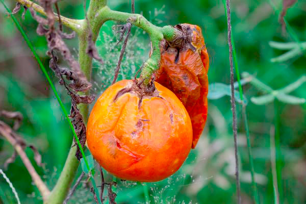 Les feuilles atteintes se dessèchent, les pédoncules se dessèchent également et les inflorescences noircissent. Les fruits des plantes malades sont recouverts de taches brun-brun difficiles au toucher, qui poussent en surface et en profondeur, puis se ramollissent et commencent à pourrir. Sur les tubercules de pommes de terre infectés par le mildiou, apparaissent des zones grisâtres avec une peau ridée, sous lesquelles, une fois coupées, on peut voir les "langues" des tissus rougeâtres affectés par le pathogène se propager vers l'intérieur. Pas étonnant que le mildiou soit également connu sous le nom de pourriture brune ou pourriture de la pomme de terre. Les tubercules affectés par cela, à première vue, et les fruits verts mûrissants deviennent non comestibles même après un certain temps après la récolte, et les plantes malades meurent souvent. Au milieu du 19ème siècle, une épidémie de cette maladie en Irlande a affecté la quasi-totalité de la récolte de pommes de terre, provoquant famine et immigration massive dans le pays.