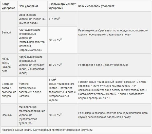 Pour les jeunes arbres qui ne portent pas encore de fruits, seule la fertilisation azotée suffit. Ils obtiennent du potassium et du phosphore des engrais appliqués lors de la plantation.