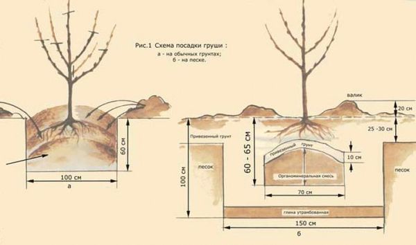 Des trous de plantation sont creusés à l'avance, du compost, de la tourbe et un complexe minéral sont ajoutés. Vous devriez immédiatement penser à planter des pollinisateurs. Pour une bonne croissance, une poire a besoin d'un sol fertile et de beaucoup de soleil. L'excès d'humidité est nocif pour elle, il faut donc éviter de planter dans les basses terres.