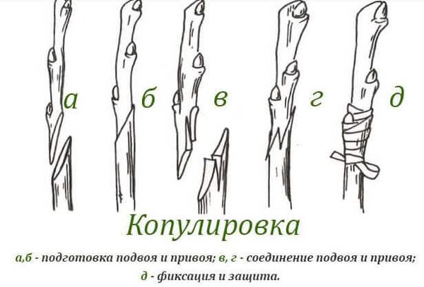 Outre cette méthode de greffage « pour l'écorce », il est également connu de greffer le greffon « dans la fente ». Lors de l'exécution des travaux, la tige est retirée de l'écorce à une hauteur de 7 cm, le stock est divisé avec un scalpel ou un couteau sur une profondeur maximale de 4 cm.La base de la bouture doit être coupée en oblique des côtés opposés , le greffon avec au moins 3 bourgeons est inséré dans l'incision et fixé avec un film. La plante est placée dans une pièce chaude, où s'effectue l'aération, le pansement est légèrement desserré lorsque les boutures jaunies commencent à tomber, et retiré lors du développement des bourgeons.