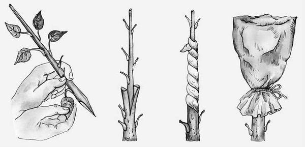 Il est nécessaire de faire des coupes obliques sur la tige de la culture mère, ainsi que sur la poignée, en l'enveloppant étroitement avec du ruban adhésif ou un bandage, mais avec précaution afin de ne pas endommager les plantes. Le pansement peut être retiré une fois que la tige ravivée a germé après un certain temps.