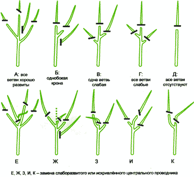 Il n'est pas surprenant que le schéma d'élimination des pousses en excès sur les troncs et les branches squelettiques des jeunes et des vieux arbres lors de la taille printanière des pommiers soit très différent, tout en ayant des racines communes. Les arbres qui n'ont pas encore porté leurs fruits ou qui ont donné une ou deux récoltes sont taillés de manière spéciale et plus souvent que les individus plus matures.