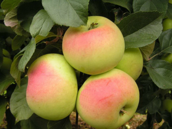 Les pommiers fleurissent début mai en inflorescences corymbes, composées de 4 à 6 petites fleurs plates sur de courtes tiges. Les pétales sont blancs avec une teinte rosâtre sur les bords, les bourgeons sont plus roses. Les fruits de taille moyenne, à pleine maturité, atteignent un poids de 130-180 g. La forme du fruit est aplatie, légèrement conique.