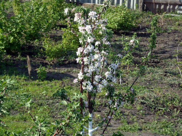 L'essentiel est que les premières années de la vie du plant, il soit protégé du vent. Par conséquent, très souvent de jeunes arbres sont plantés le long de la clôture ou des dépendances.