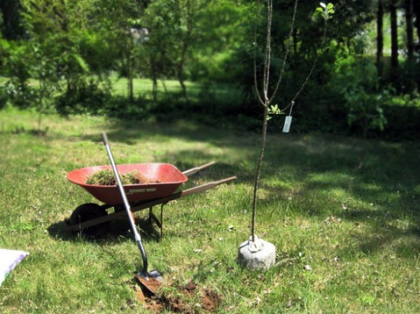 - pendant les premières années, le trou doit être paillé avec du fumier de cheval afin de protéger les jeunes racines du gel.