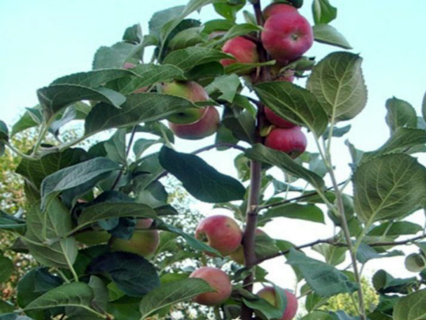 La description du pommier doit commencer par le fait que l'arbre pousse de taille moyenne, alors qu'il a une couronne compacte et arrondie. Cela vous permet de planter des pommiers assez proches les uns des autres. Les branches squelettiques sont couvertes d'écorce jaune clair, situées presque à angle droit par rapport au tronc. La disposition des branches est majoritairement droite, tout en étant extrêmement compacte. La fructification a lieu sur les boucles, les hampes de fruits et les pousses de l'année dernière.