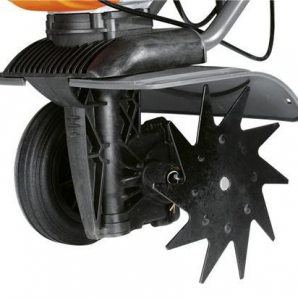 Le modèle est complété par un soc unique extra-fort, qui est chargé d'ajuster la profondeur du renouvellement du sol. Le panneau de commande a trois hauteurs. Pour faciliter l'utilisation, l'unité est équipée d'une roue de transport, de fraises sabres forgées et de disques de chanfreinage latéraux.