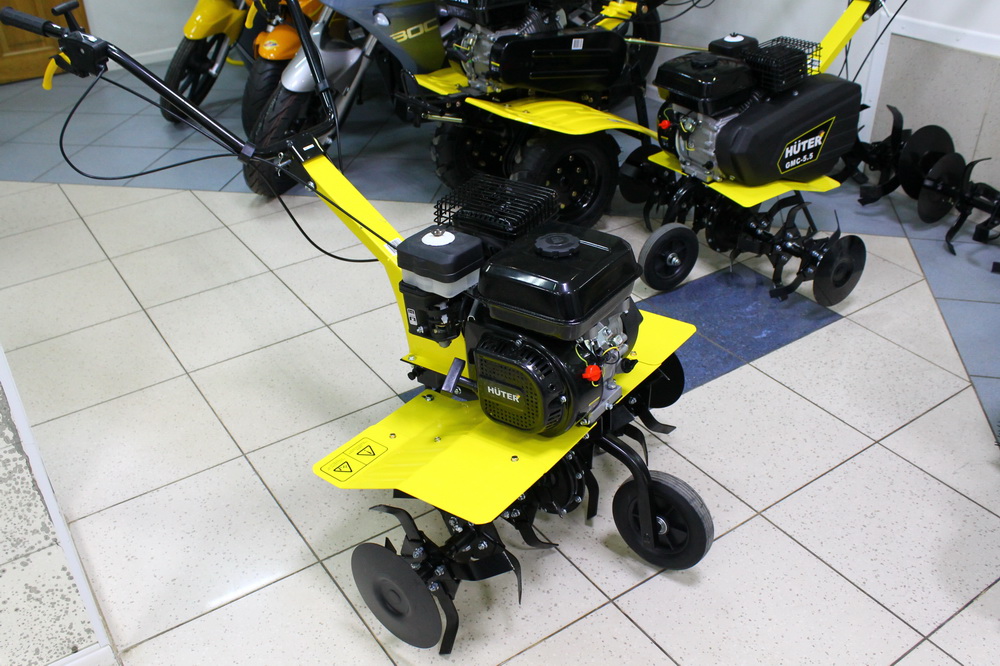 Le motoculteur Huter GMC-5.0 est populaire auprès des résidents estivaux, car il peut être utilisé pour ameublir et préparer le sol pour la plantation saisonnière. Pour la commodité de l'utilisation prévue, des roues de transport et la possibilité de modifier la hauteur du levier de commande sont fournies.