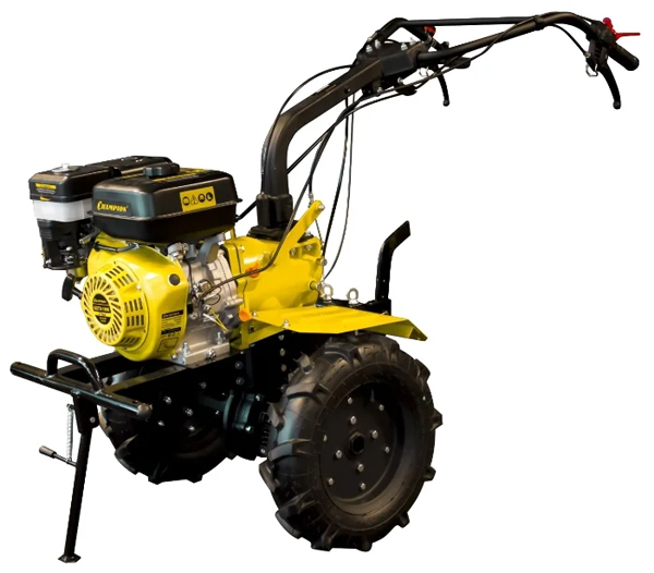 Le tracteur diesel à conducteur marchant CHAMPION DC1193E est équipé de grandes roues pneumatiques qui améliorent la capacité de l'unité à tout-terrain. Il existe deux vitesses avant et une vitesse arrière. Commencé avec une clé. Diffère dans la simplicité et la facilité d'utilisation.