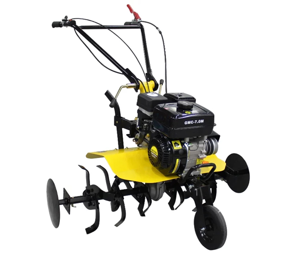 Tracteur à conducteur marchant multifonctionnel pour le traitement de divers types de sol, le buttage de plantes, le fauchage des mauvaises herbes et les jeunes pousses d'arbustes, le transport de marchandises et l'approvisionnement en eau. Dans le même temps, le Huter GMC-9.0 se caractérise par sa compacité et sa maniabilité. Le volant peut être réglé. Les roues sont recouvertes de protections spéciales pour éviter la dispersion du sol. Huter GMC-9.0 est un cultivateur à essence bien pensé et facile à utiliser.