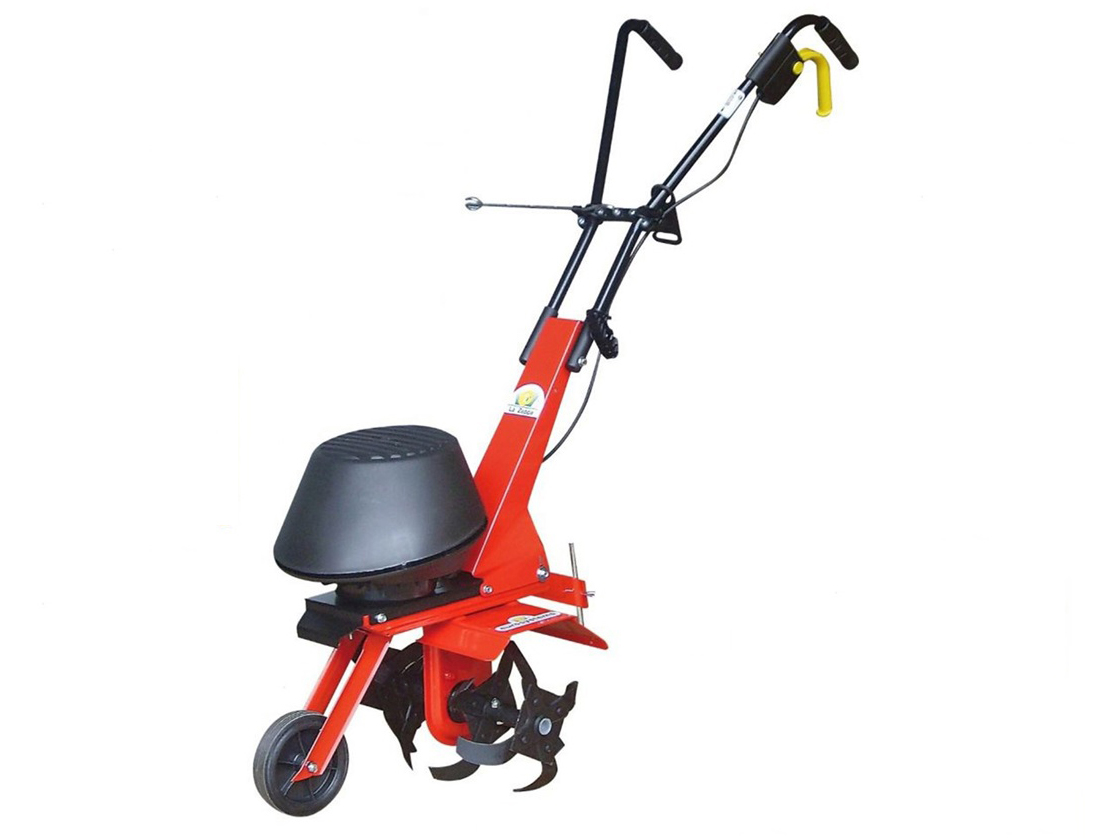 Cultivateur électrique ergonomique et compact pour les petites parcelles. Il est activement utilisé pour le labour, l'ameublissement et le nivellement du sol, le désherbage des interlignes, le buttage des lits, la coupe des sillons et l'épandage d'engrais.
