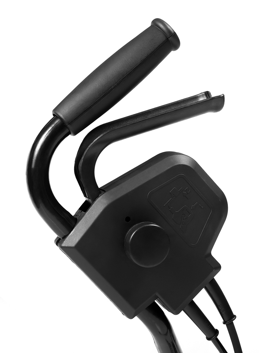 Le cultivateur Hyundai T 1810E est protégé contre les démarrages accidentels. Un bouton dédié est situé sur la poignée ergonomique.