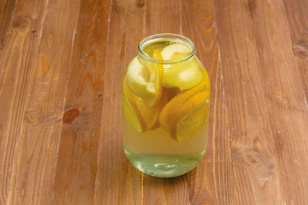 Si les agrumes sont combinés avec d'autres fruits, ils sont également lavés et, si nécessaire, coupés en morceaux. Pour préparer une boisson, vous aurez besoin d'une casserole en émail, d'un bol, d'un couteau bien aiguisé, d'une planche à découper et d'un récipient à sertir.