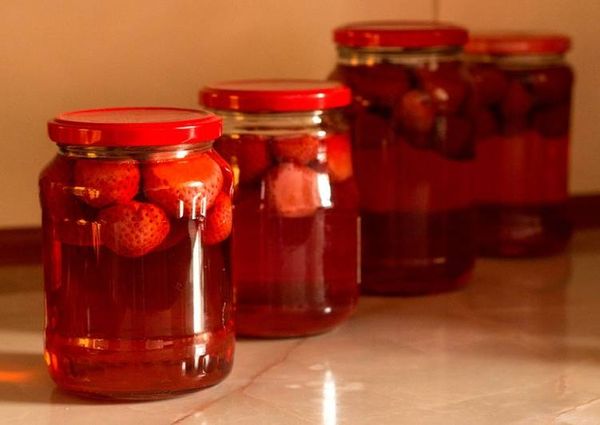 - Versez le sirop chaud obtenu sur les fraises et roulez le bocal avec un couvercle.