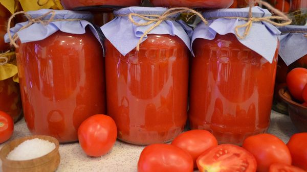 - Versez le jus de tomate sur les tomates et stérilisez le tout au feu.