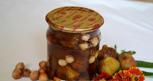 Mettre les figues dans le sirop bouillant et cuire 3 minutes. Maintenant, la confiture peut être retirée du feu, laissez-la infuser pendant 3 heures. Cette procédure doit être répétée deux fois, après quoi la friandise peut être versée dans des bocaux.
