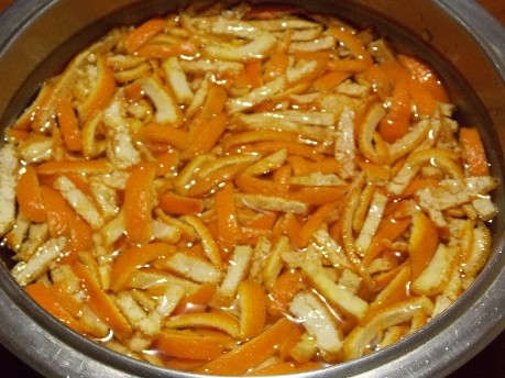 - 1 kg d'agrumes sont versés dessus avec de l'eau bouillante.