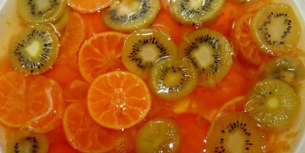 - 1 kg de tranches d'agrumes sont recouverts de 1 kg de sucre cristallisé.