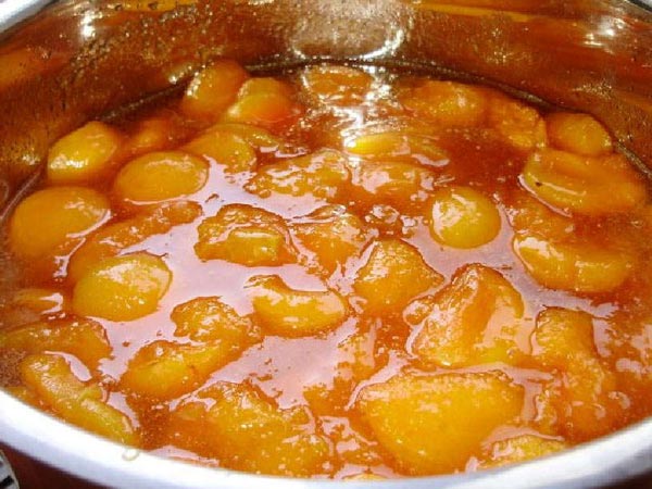 Après avoir fait bouillir la masse, la température est abaissée à 100 ° C, cuite pendant 3 heures. Le résultat sera une confiture de miel doré au goût original et à l'arôme délicat avec une note d'agrumes.