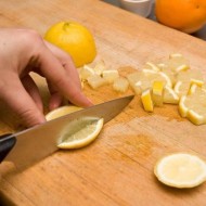 - Hacher finement le citron. Si la peau est épaisse, râpez le zeste, retirez l'enrobage blanc amer et hachez la pulpe. On ajoute des agrumes lors de la dernière cuisson.