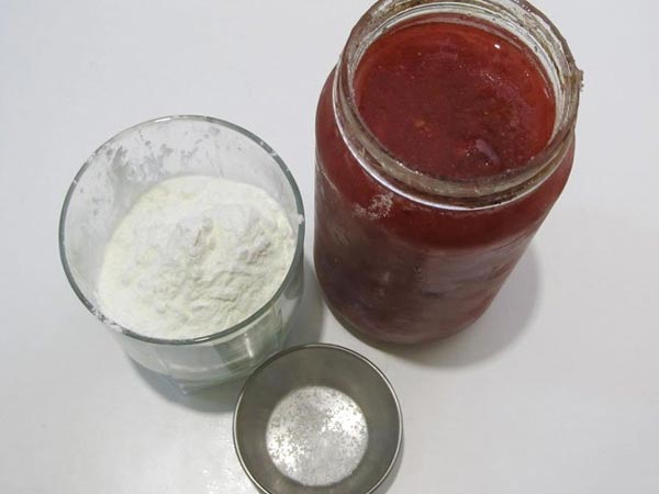 - Gelée : 1 cuillère à soupe. l. par verre. Après avoir versé la poudre dans la pièce, remuez-la soigneusement et laissez-la gonfler. Le temps de maintien recommandé doit être indiqué dans les instructions. Ce produit peut non seulement rendre la garniture plus épaisse, mais également lui donner une saveur plus riche.