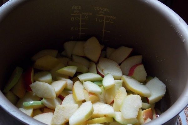 Les fruits dénoyautés coupés sont placés dans un bol, recouverts de sucre, d'eau ajoutée (ou d'une décoction de peaux de pommes), mis au feu. Après ébullition, retirer la mousse, mélanger, faire bouillir jusqu'à tendreté.Les fruits ramollis peuvent être hachés avec un mélangeur, puis bouillis pendant 5 minutes supplémentaires si vous souhaitez obtenir une masse complètement homogène.