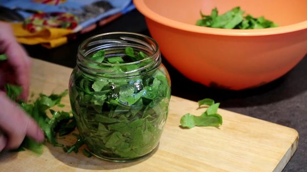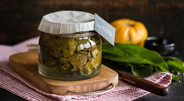 La conservation de l'oseille de cette manière élimine le besoin de sel.Les pots avec un blanc sont parfaitement conservés sans stérilisation, il n'est pas nécessaire d'ajouter du vinaigre - l'acidité naturelle des feuilles assure leur durabilité.