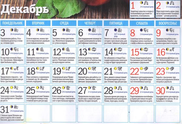 - 29-30 décembre. Jour lunaire - 22-23. Balance. Phase de lune décroissante. Récoltez dans les plates-bandes. L'éclaircissage et le désherbage seront utiles. La pulvérisation est indésirable.