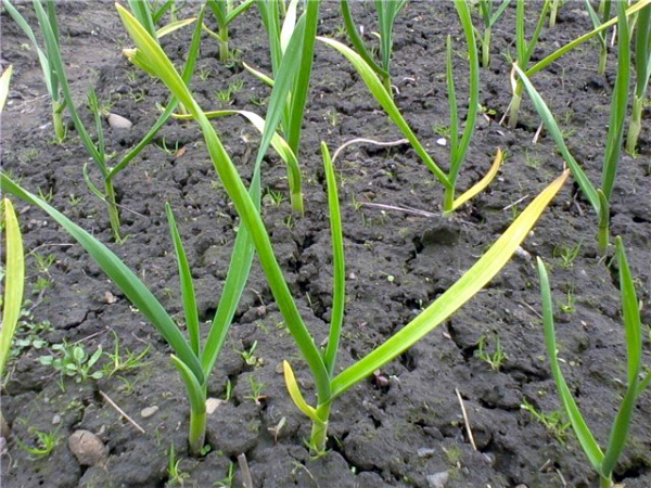 De plus, le site d'atterrissage ne doit pas se trouver dans les basses terres, où l'eau est retenue. N'oubliez pas qu'une humidité élevée crée un environnement idéal pour la croissance des spores fongiques. Le site peut également être fertilisé avec un mélange de nitrate (200 grammes), de chlorure de potassium (200 grammes) et de superphosphate (600 grammes) par 10 mètres carrés. Il est impératif de maintenir une distance entre les dents plantées d'au moins 10 centimètres, la profondeur ne doit pas être inférieure à 4 centimètres.