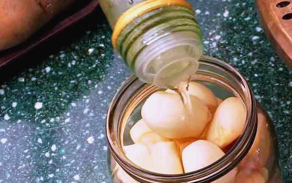 Le stockage de l'huile est un excellent moyen lorsque vous n'avez nulle part où mettre un tiroir encombrant, mais que vous voulez des clous de girofle frais en hiver. Pour ce faire, les bulbes doivent être épluchés, puis les clous de girofle doivent être pliés dans un bocal. Essayez de les empiler étroitement, vous pouvez même secouer le pot plusieurs fois. Vous pouvez utiliser n'importe quelle huile - tournesol, olive, maïs, en général, ce que vous voulez. Versez l'huile dans le pot afin qu'elle recouvre complètement les clous de girofle.Après cela, fermez le pot avec un couvercle troué, retirez-le au réfrigérateur et profitez du résultat pendant les 3-4 prochains mois. Un grand avantage de cette méthode de conservation est que vous obtenez non seulement de l'ail frais, mais aussi de l'huile aromatique.