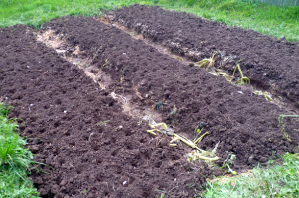 - dernière fois, un mois avant la récolte (mi-juin) - superphosphate (2 cuillères / 1 seau d'eau), consommation 4 l / 1 m².