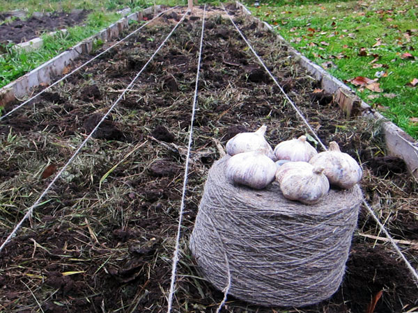Vous devez creuser le sol pour planter les dents jusqu'à 8 cm de profondeur. La distance entre chaque clou de girofle semé pour l'hiver doit être de 8 à 10 cm.Pour que la culture et la récolte soient aussi pratiques que possible, et que chaque plante ait la bonne quantité de nutriments, la culture doit être plantée en damier, tout comme il est recommandé de planter des fraises.