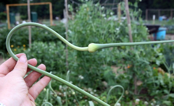 Des flèches se forment souvent sur l'ail d'hiver. Ils doivent être enlevés au fur et à mesure qu'ils apparaissent, car la taille des têtes et, par conséquent, le rendement en dépendent.