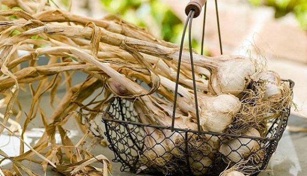 L'ail d'hiver est récolté dans la seconde moitié de juillet et l'ail de printemps - de fin août à mi-septembre. En juillet, le signal de la récolte est une inflorescence éclatée dans laquelle les bulbes d'air mûrissent (toutes les flèches n'éclatent pas, dans certaines plantes, elles sont laissées pour pouvoir améliorer la culture). Et le printemps est récolté lorsque les feuilles inférieures se dessèchent.
