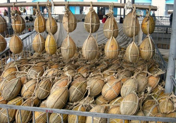 Après une semaine de « bronzage » au soleil, ils sont retirés dans un endroit sombre, frais et peu humide, où ils finissent tranquillement de mûrir. Et quand il fait nuageux, froid ou même neigeux dehors, vous et vos proches pourrez déguster des melons juteux et sucrés.