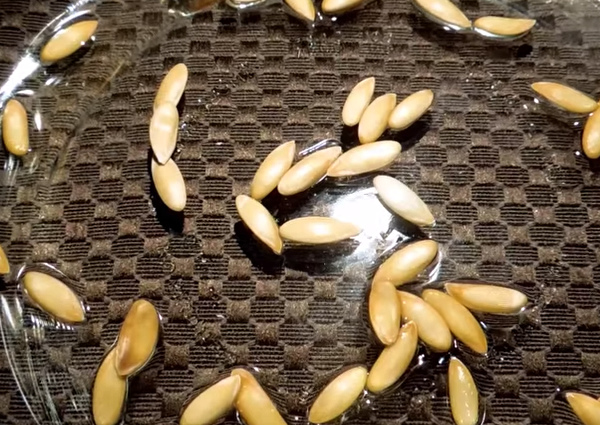 La pulpe avec les graines est sélectionnée à partir du melon coupé, les graines elles-mêmes sont séparées et lavées, disposées en une fine couche dans une pièce chaude et ventilée pour le séchage. Séchez-les bien à des températures de +35 à +40 degrés, une température plus élevée n'est pas souhaitable.