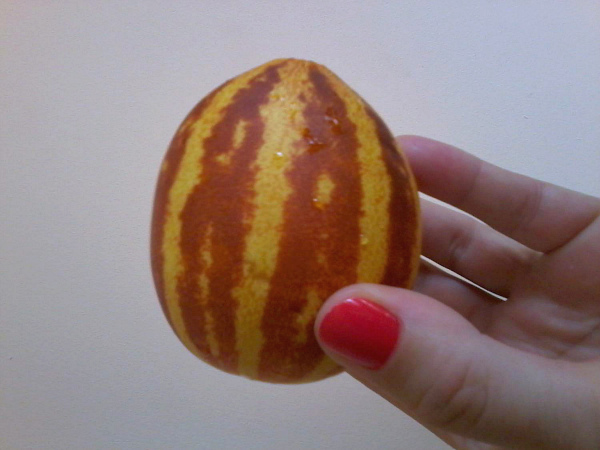 Un hybride miniature avec une peau rayée verte qui ressemble à une petite pastèque. La chair de ces fruits est également verte et légèrement aqueuse avec un goût aigre.