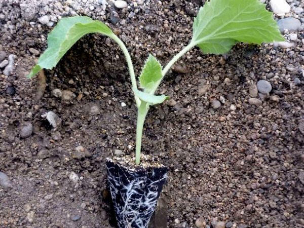 En plein champ, les semis sont placés début juin, lorsque la température de l'air est suffisamment élevée. Les trous sont espacés de 80 cm. Lors de la plantation, essayez de ne pas endommager les racines des plants. Pour l'aider à mieux coller, créez une ombre les premiers jours.