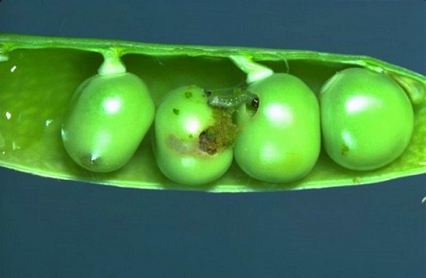 Les papillons pondent leurs larves (et parfois il y en a au moins 200) sur les fleurs, les tiges et les feuilles des plantes. Après quelques jours, les larves se transforment en petites chenilles, qui rampent facilement dans les inflorescences, les ovaires et y restent jusqu'à la formation des pois. Ensuite, ils mangent tout le contenu de la cosse, et ils n'ont plus à dépendre de la récolte.