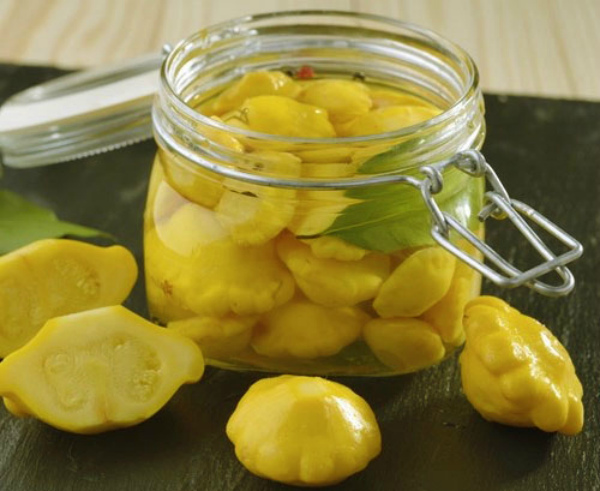 La courge salée est un autre moyen de stockage à long terme. En plus du composant principal, vous aurez besoin de: poivron, piment de la Jamaïque, feuille de laurier, aneth, vinaigre, eau et sel.