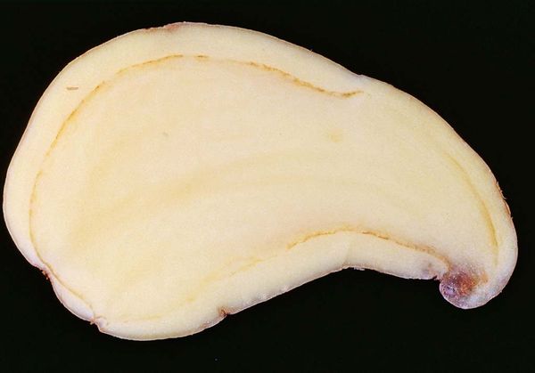 La maladie est difficile à diagnostiquer en raison de symptômes mal exprimés. Il est possible de déterminer la présence de pourriture annulaire uniquement sur la coupe. Lorsqu'un morceau de toupie est pressé, une substance putréfiante de teinte jaunâtre ou brune en est libérée. Sur les tubercules infectés, des zones à contenu jaune-brun collant apparaissent. La fertilisation du sol avec des composés azotés et potassiques, ainsi qu'un bon séchage de la culture, aideront à prévenir les maladies.