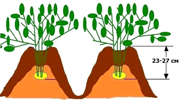 - lorsque les premières pousses apparaissent, il est nécessaire de former des crêtes dont la hauteur est d'environ 25 cm et la largeur de 75 cm.