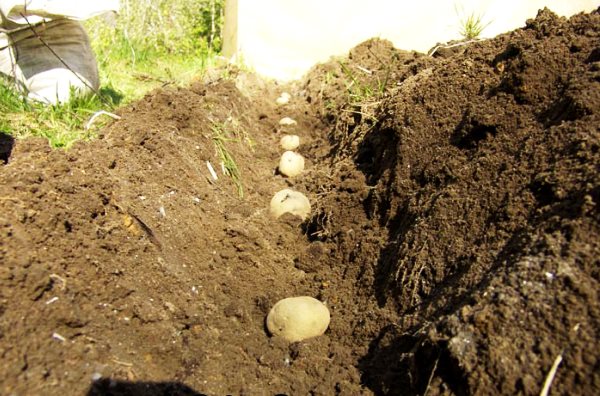 Tranchée. Cette méthode est plus justifiée pour les sols sableux ou limoneux sableux, ainsi qu'en présence d'un climat chaud. Cette méthode est essentiellement l'opposé des crêtes. Ici, l'atterrissage s'approfondit, pas s'élève. Ainsi, les tubercules plantés sont protégés d'un éventuel dessèchement et d'une surchauffe. Il n'est pas recommandé d'utiliser cette méthode sur des sols humides, car l'eau stagnante et la détérioration des échanges d'air dans les tubercules entraîneront une mauvaise récolte.