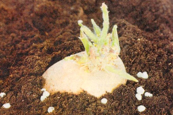 Pendant 35 à 40 jours avant la plantation, le matériel de plantation doit être retiré du lieu de stockage et réchauffé. La température de chauffage optimale est de 18-2o degrés. Dans de telles conditions, les pommes de terre doivent rester au moins 4 jours. Lorsque les premiers yeux apparaissent, les graines doivent être disposées dans des boîtes en 2-3 couches et exposées à la lumière à une température de 8 degrés.