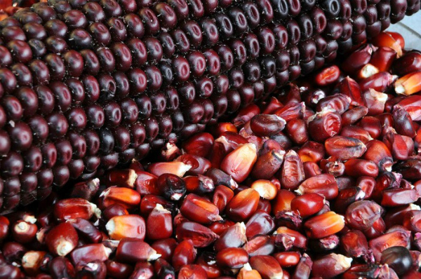 Maïs rouge (c'est aussi dans certaines régions "maïs noir") - une variété de maïs nous est venue des profondeurs du Pérou. Son grain, qui sert à la fois à l'alimentation et aux graines, est de couleur marron, presque noire à cause des anthocyanes. Cultivé au Pérou, le maïs noir a de nombreux avantages pour la santé en raison de ses niveaux élevés d'antioxydants. Souvent, le maïs noir est inclus dans le menu diététique pour améliorer le métabolisme du corps humain.