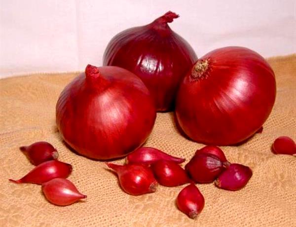 Dans les plats qui doivent être frits ou cuits au four, il est également utilisé, mais dans une bien moindre mesure. Comme beaucoup d'autres types d'oignons, Carmen est également un trésor de nutriments. Premièrement, c'est une source impressionnante de vitamine C. Deuxièmement, il contient une grande quantité de substances sèches et de sucres. Si vous croyez à la médecine traditionnelle, l'oignon rouge empêche la formation de cellules cancéreuses dans le corps et ralentit leur croissance. Il est également recommandé de l'inclure dans l'alimentation quotidienne des personnes ayant un taux de cholestérol élevé, car vous pouvez le réduire d'environ 20% à l'aide d'une consommation constante d'oignons rouges.