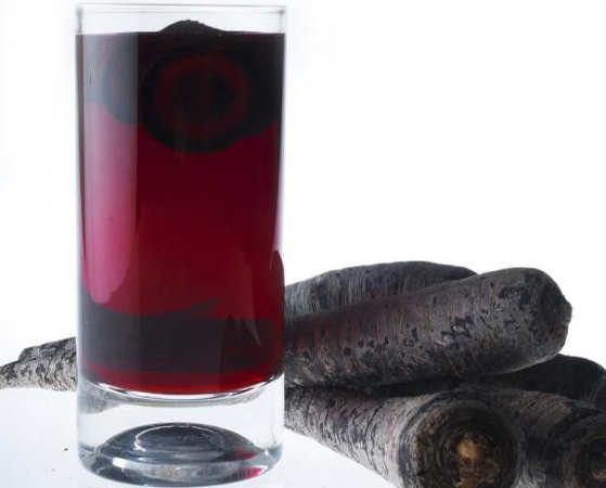 Le concentré de carotte noire a des effets anti-inflammatoires, antioxydants et toniques. Le jus fraîchement pressé est pris avant les repas. En cas de lithiase urinaire, la boisson concentrée doit être diluée avec du miel liquide dans un rapport 1: 1.