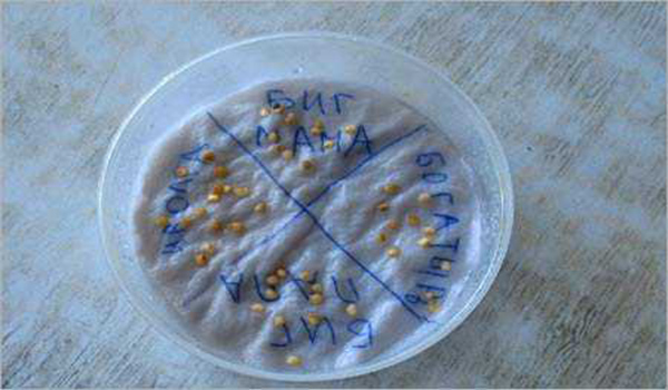 Pour les impatients, qui veulent voir les germes plus tôt, il existe une méthode de trempage. Les graines pré-désinfectées sont placées sur du caoutchouc mousse ou de la gaze humidifié et laissées dans un endroit chaud. Il est nécessaire de contrôler la teneur en humidité du tissu, en le protégeant du dessèchement.