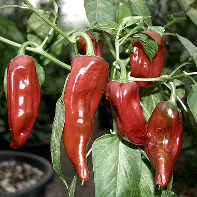 Pour conserver les poivrons à la maison, choisissez des variétés de poivrons décoratifs de petite taille. Blau est un buisson atteignant 16 cm de haut, donnant des fruits de forme conique allant du bleu foncé au rouge foncé, et Mouth est également un buisson atteignant 25 cm de haut, donnant des fruits coniques d'environ 4 cm, dont la couleur est du jaune au rouge vif. Les variétés comestibles de poivrons d'intérieur sont Bride, Troll, Salute, Black Prince, Carmen, Bouquet of the East F1, Masquerade F1, et les variétés non comestibles sont Clown, Orange, Goldfinger, Pepperoni, Red Rocket, Goldfinger.