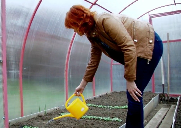 Au printemps, dès que la terre dégèle sous un soleil chaud, il faut la déterrer à nouveau en ajoutant des engrais minéraux. Étant donné que notre légume précoce préfère un sol léger, le sol argileux doit être mélangé avec du sable ou de la tourbe. Les lits préparés sont nivelés, les rainures de semis sont marquées à une distance de 10 cm les unes des autres. Avant de semer, ils peuvent être saupoudrés de cendres, renversés avec de l'eau chaude.